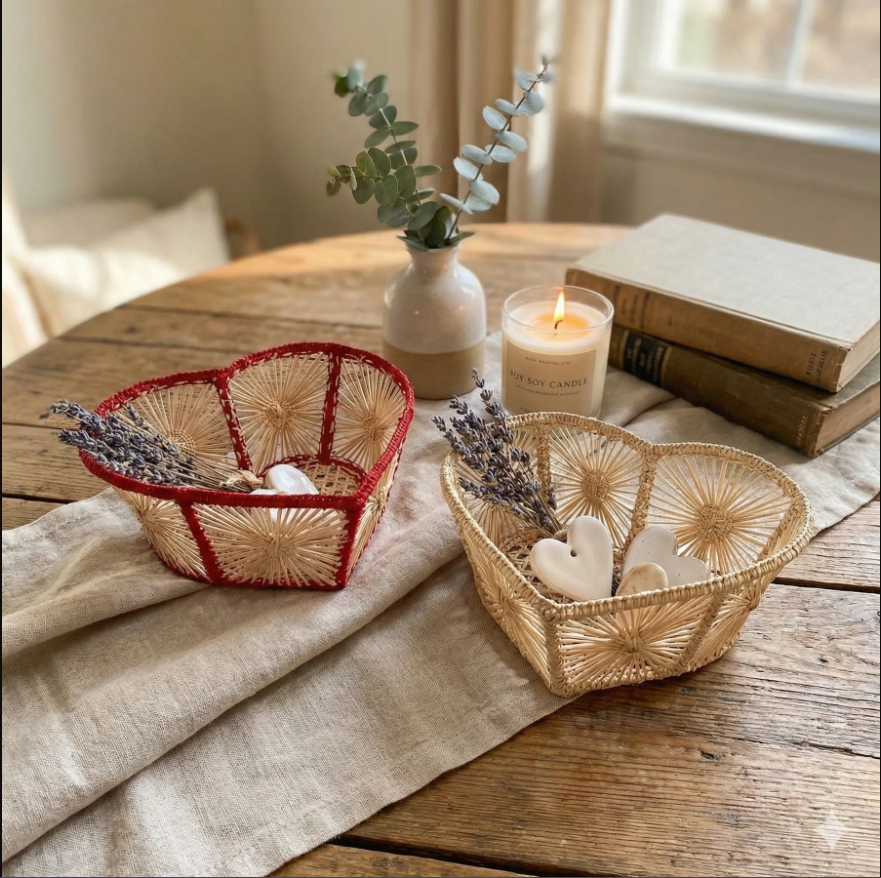 Small Heart Iraca/Straw Bread Basket